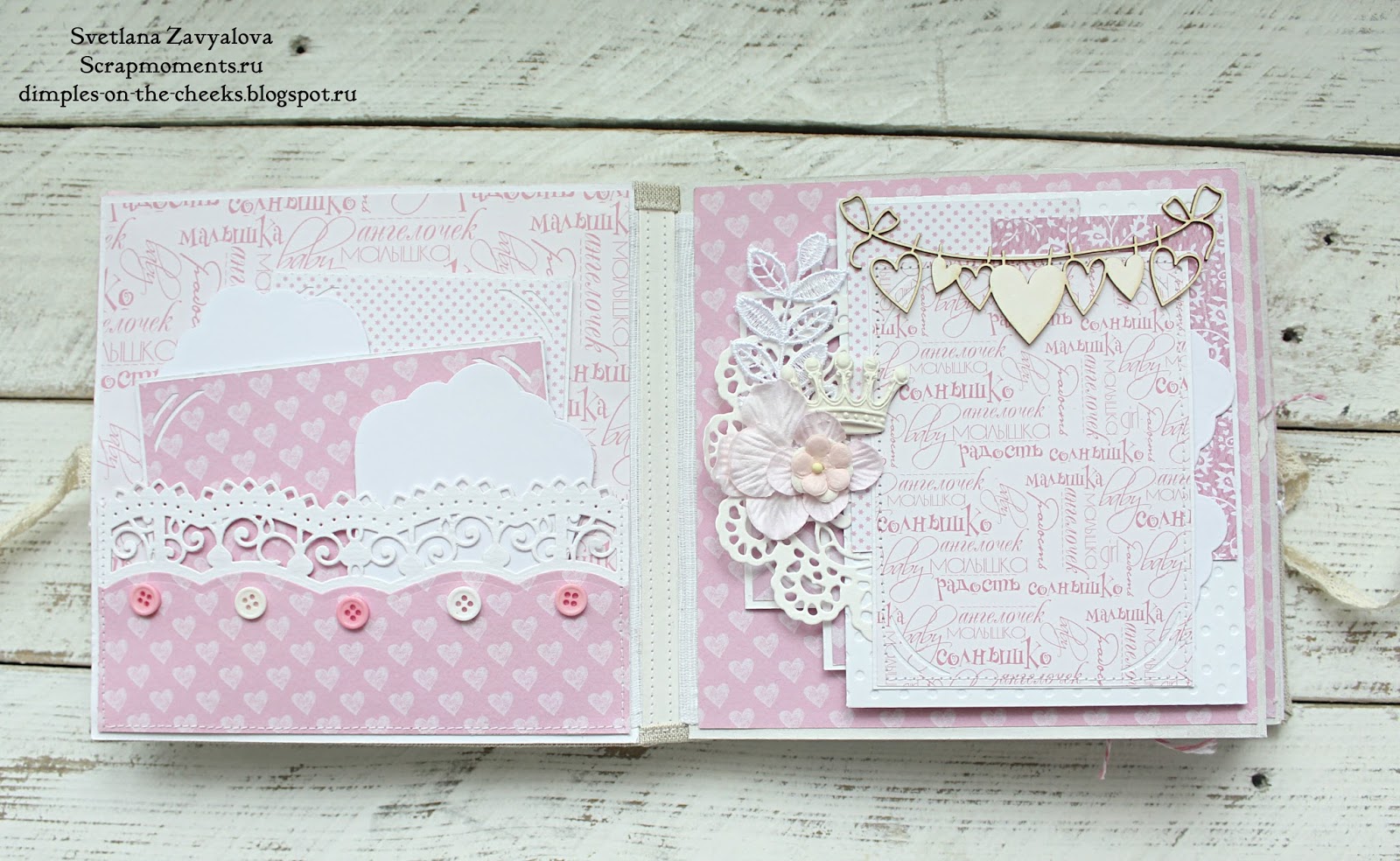 Альбом делала просто на продажу по вдохновению из бумаги "Мамины сокровища" от Scrapberry's, правда добавила 1 листик другой бумаги)